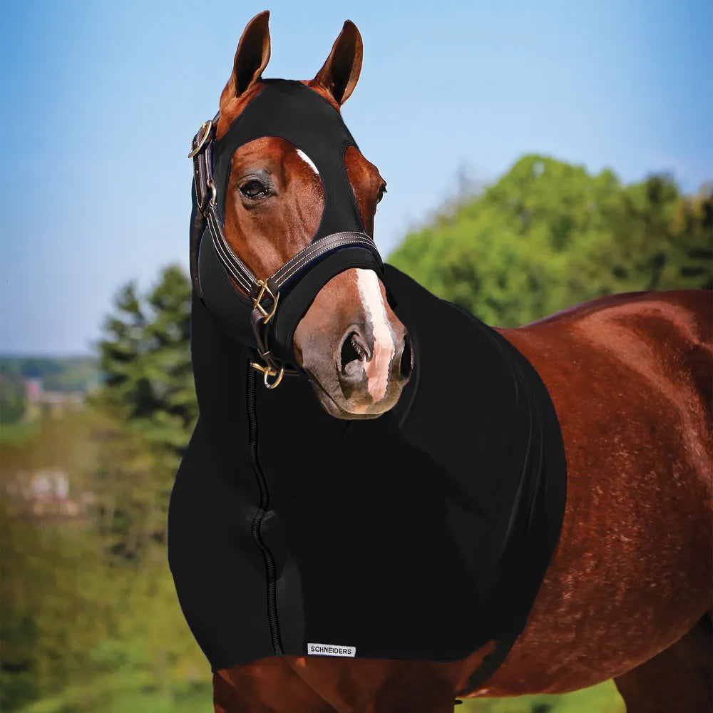 The Ultra full zip slicker hood is designed to keep your horse clean of dirt, dust and shavings, to keep manes, braids and bands lying flat, and to protect the horse's hair coat from rubbing or chafing underneath their blankets. Made of the highest quality fabric, the Ultra slicker hood has extra-large eye-holes, and a full zipper to ensure your horse remains comfortable and protected.